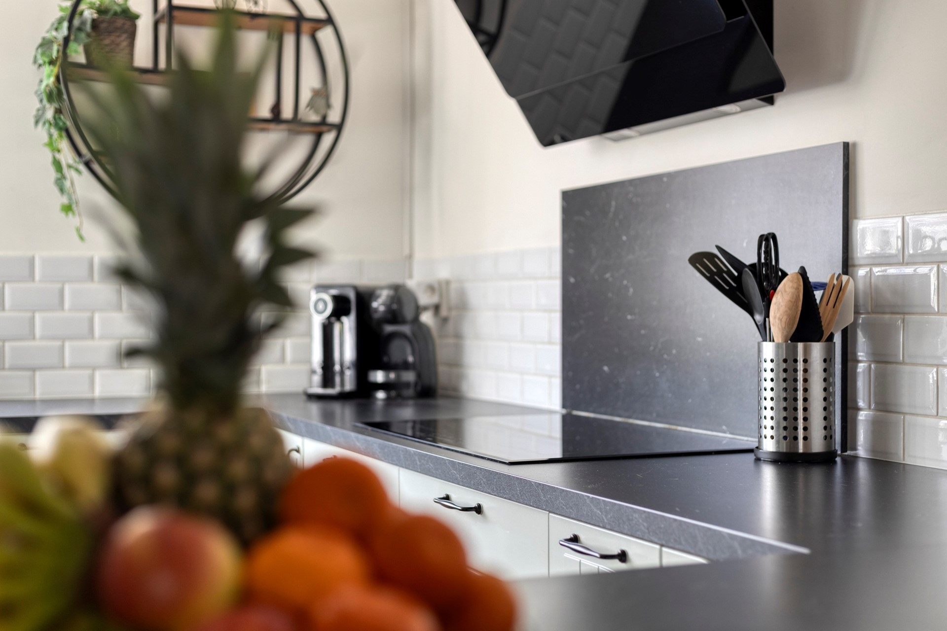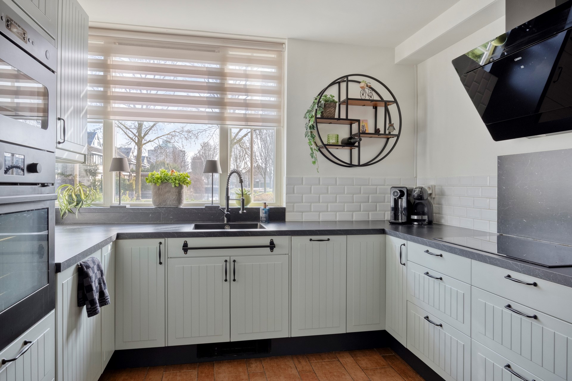 De keukenapparatuur is van Ikea en Cendo.